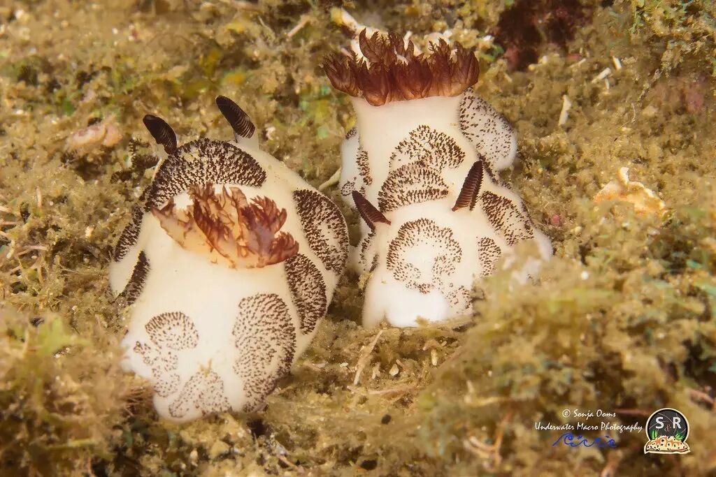因为长得十分像兔子,会有许多人称它为“Sea bunnies(海兔子)”。其实,碎毛盘海蛞蝓隶属于腹足纲(Gastropod)后鳃亚纲(Opisthobranchia)裸鳃目(Nudibranchia)的海牛科(Dorididae),而我们常说的海兔则属于后鳃亚纲的无楯[shǔn]目(Anspidea),它们只能算亲戚。