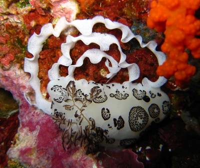 J. funebris在礁石间产下卵带。图片:seaslugforum.net