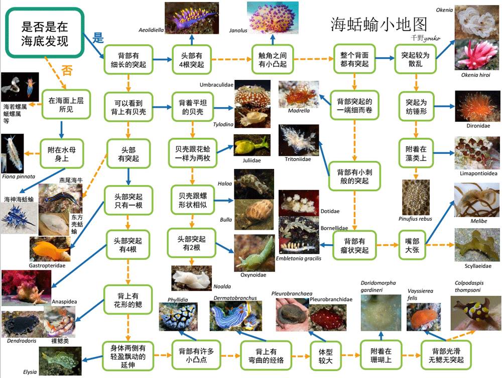 那么多那么多那么多海蛞蝓,到底谁是谁,这里有张地图帮你检索,点击图片能放大: