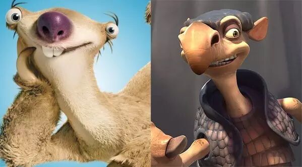 《冰河世纪》的主角Sid原型是巨爪地懒,而尝试飞行失败的萌物原型就是雕齿兽。图片:电影《冰河世纪》