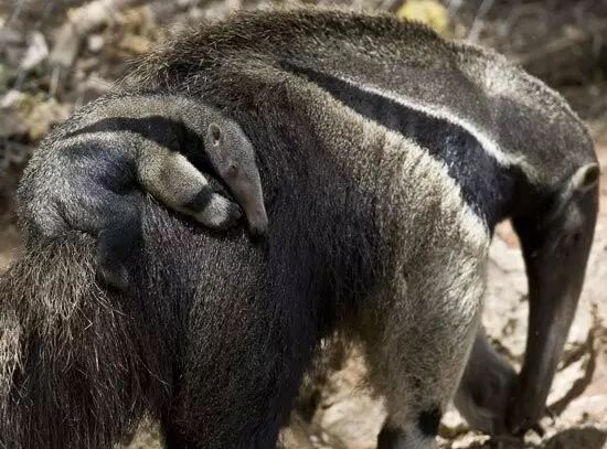 目前人们认为,雌性大食蚁兽每年只生一只幼崽,它背着新生儿在大地上漫步也算是一种奇观了。大概到每年的8月份,幼崽才会下地,跟着母亲走路。