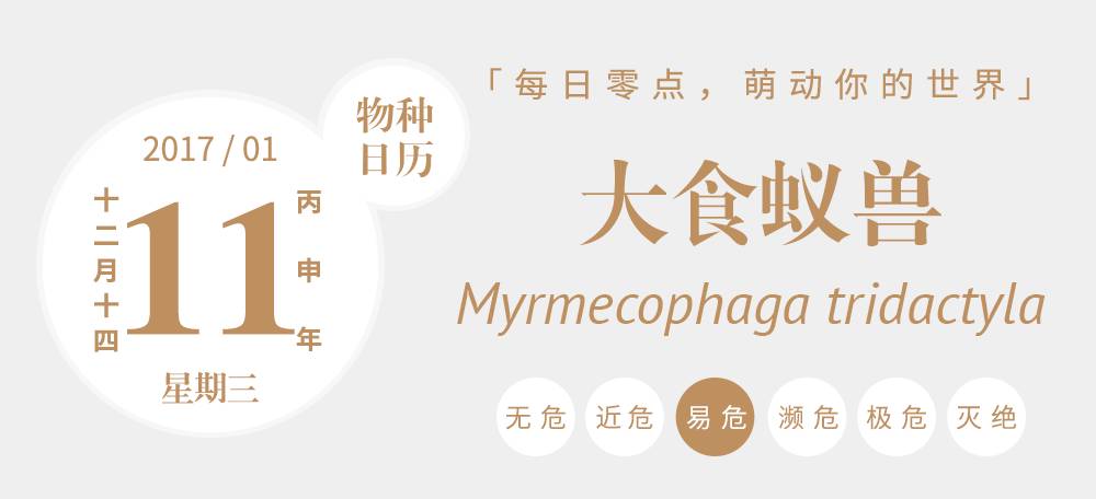 在为数不多的现生贫齿类动物中,食蚁兽可能是最奇怪的一类,分为2科3属4种,其中体型最大而仅在地面栖息的那个种,就是我们今天的主角大食蚁兽(Myrmecophaga tridactyla)。