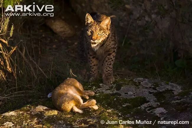伊比利亚猞猁和被捕猎的穴兔。图片来源见水印