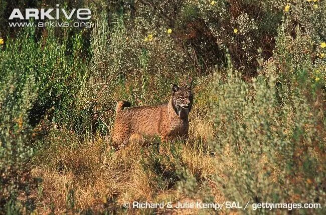 常绿灌丛中的伊比利亚猞猁。图片来源见水印