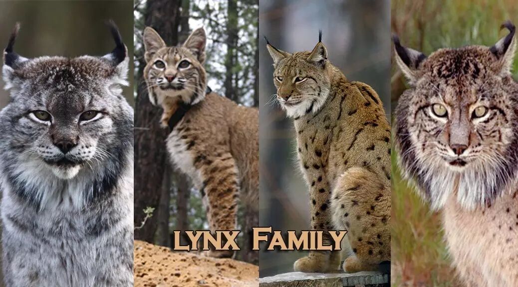 猞猁属的四个物种,从左至右依次是:加拿大猞猁、短尾猫、欧亚猞猁和伊比利亚猞猁,注意最右的大脸盘(雾)。图片:Bizz Media