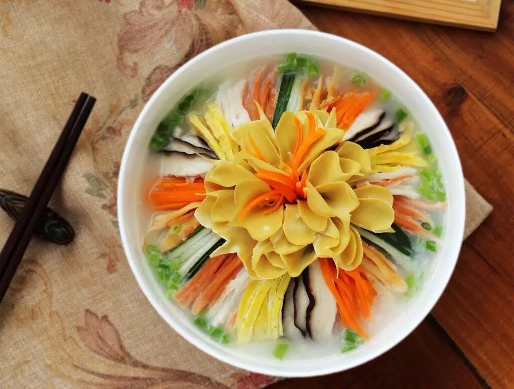 以白萝卜为主材的牡丹燕菜。图片来自豆果美食