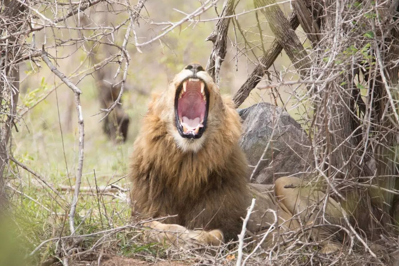 南非-克鲁格狮子打哈欠。摄影:张劲硕