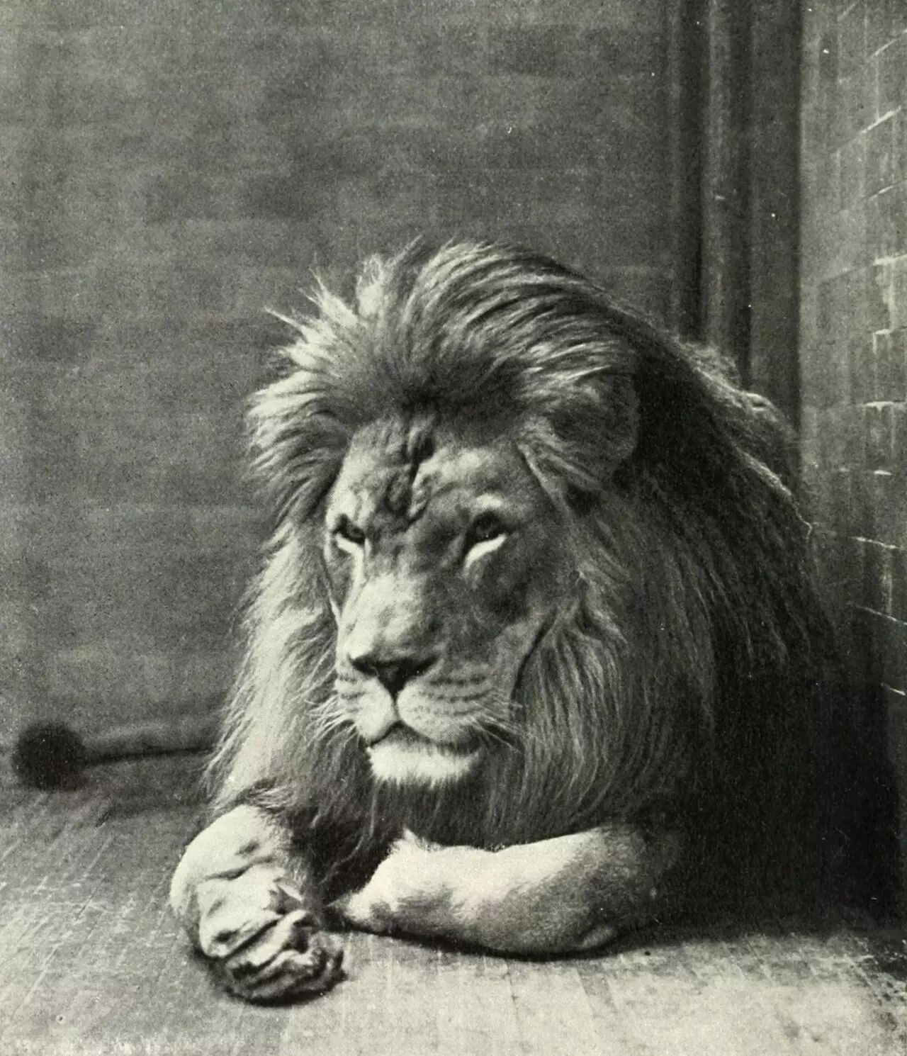 一头生活在纽约动物园、名叫Sultan的北非狮,Nelson Robinson摄于1897年。图片:wikipedia