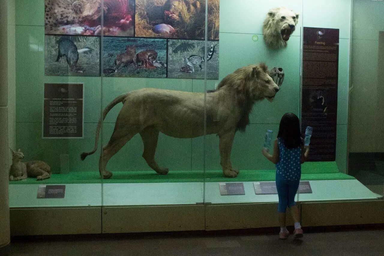 肯尼亚-内罗毕国家博物馆中来自察沃的短鬃狮。摄影:吴海峰