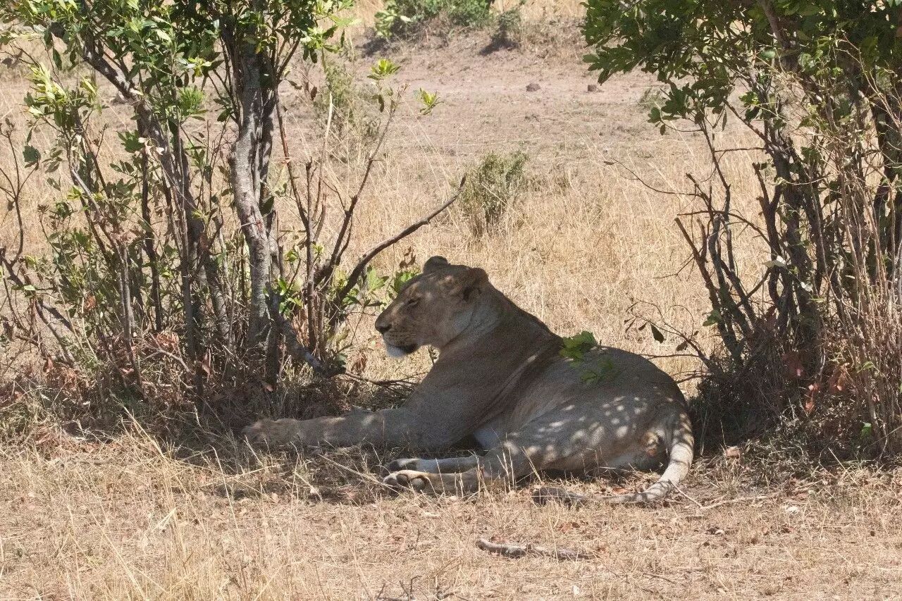 肯尼亚-马赛马拉,狮子喜欢在低矮灌丛下休息。摄影:张劲硕