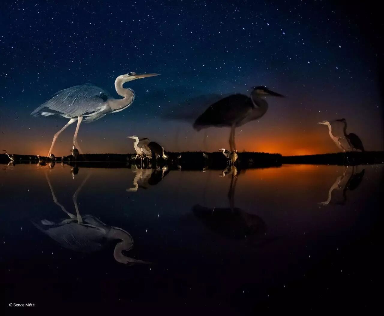 比方说这一张《Herons in time and space》,让本斯·马特获得了2014年WPY鸟类组冠军。你猜,这一张是如何拍出来的呢?