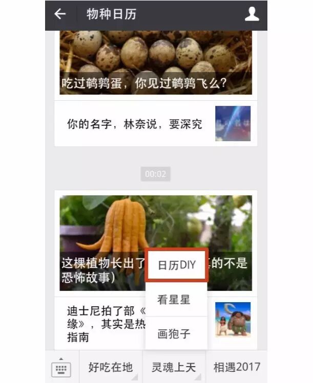 入口1.点击物种日历公众号菜单栏“灵魂上天”选择“日历DIY”就能直接进入活动页面。