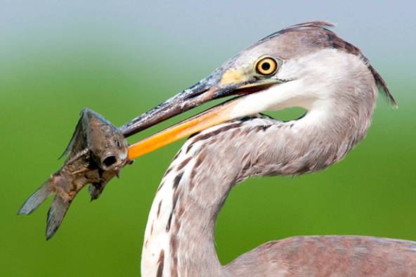 苍鹭在捕食鲫鱼, “就是爱吃”。图片:Csaba Tökölyi / Flickr