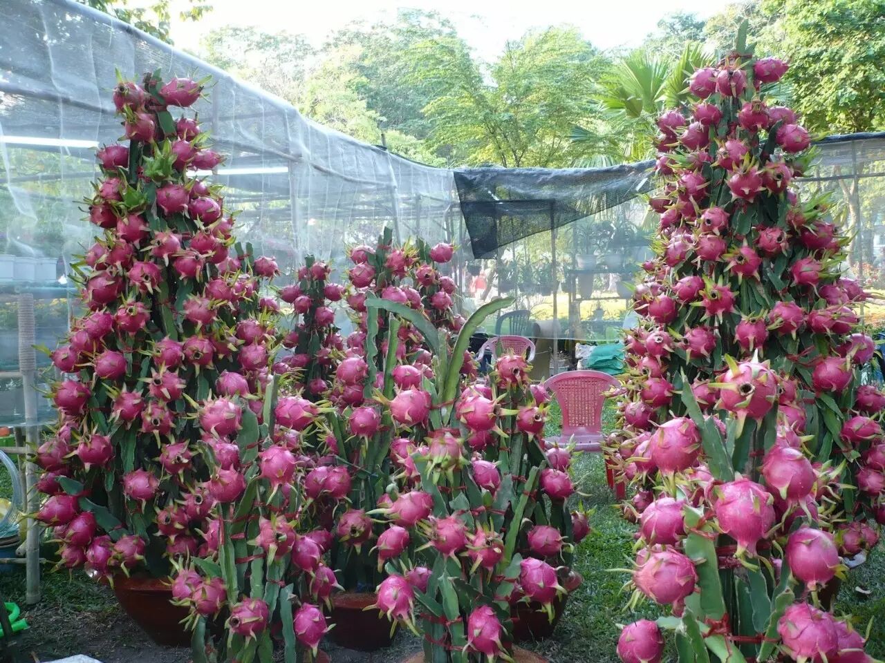 如今商业化栽培的火龙果几乎遍及整个热带地区,美洲之外的种植者当然不可能把蝙蝠传粉者也引种过去,而大半夜挨个做人工授粉的成本又太高了,怎么办呢?吃货的智慧是无穷的,火龙果自交亲和的特性被利用了。果农只需在开花前用一个夹子夹住花蕾先端,这样花冠无法展开,雄蕊雌蕊都挤在一起,花药开裂时花粉就都落到柱头上了。接下来只要施够肥等着果实成熟就好。