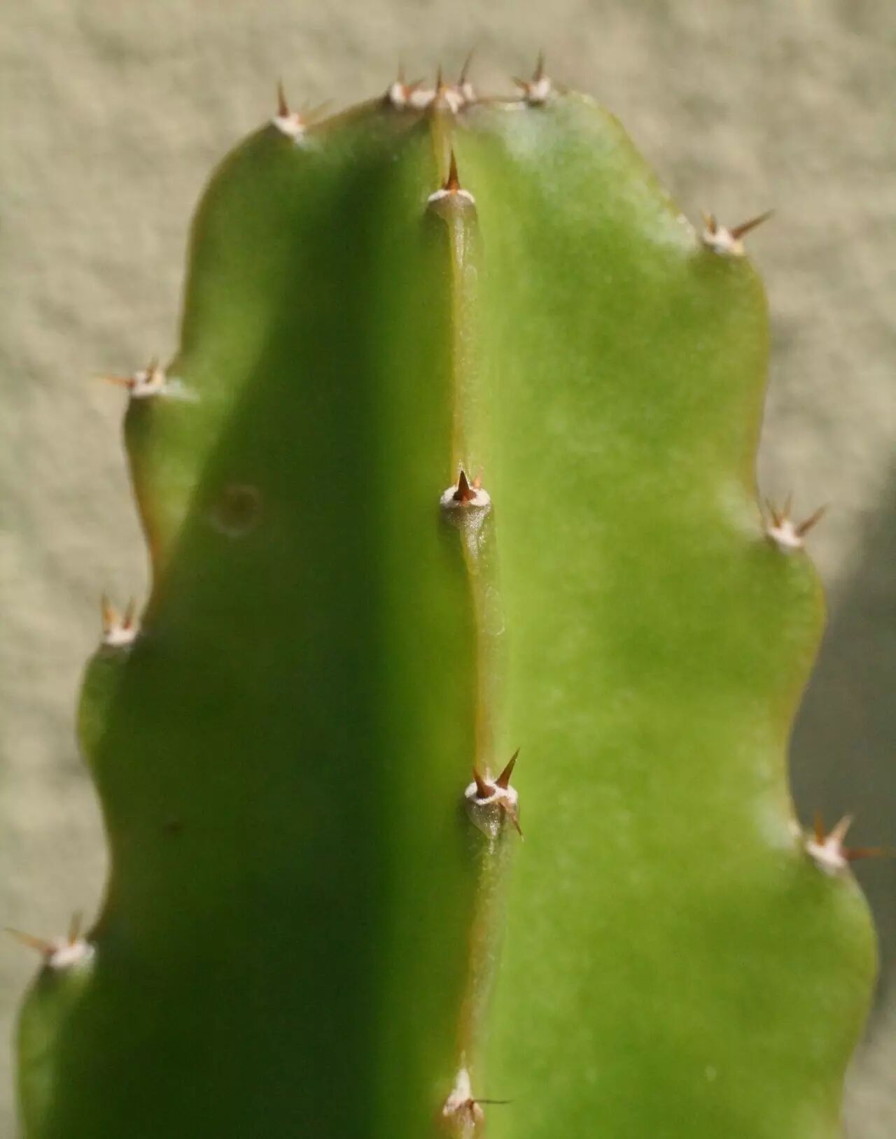 先从不能吃的这个说起。量天尺是肉质攀援灌木,像仙人掌科里的绝大多数亲戚一样,叶片退化成了小刺,靠宽大的肉质茎来进行光合作用。这样的茎分枝一多难免头重脚轻,当然不可能长成参天大树,只能攀附在树干岩石上生长。“量天尺”这个名字的真实含义,是形容这种植物善于攀缘悬崖绝壁、而茎的每一节又形似尺子。