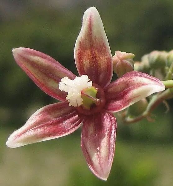 木薯的花单性同株,圆锥花序长在茎顶或上部的叶腋里;花序下部的几朵花是雌花,有3枚心皮组成的子房;上部的若干朵花都是雄花,有排成两轮的10枚雄蕊;雌花和雄花都没有花瓣,只有5枚具斑点的花萼;果实是蒴果,表面有6条窄翅。