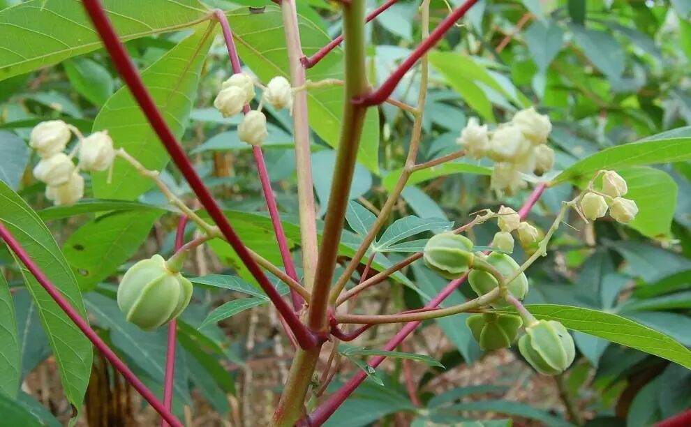 在分类学上,木薯属于大戟科。这是一个盛产毒物的类群,而木薯也并不例外,全株有毒。木薯的毒性主要来自两种氰苷类化合物,亚麻苦苷和百脉根苷。它们在木薯自身所含的亚麻苦苷酶的作用下水解后,就会释放出氢氰酸。氢氰酸的毒性自然不待多言,所以木薯是不能鲜食的,不小心吃了的话,轻则恶心呕吐,重则删号重练。