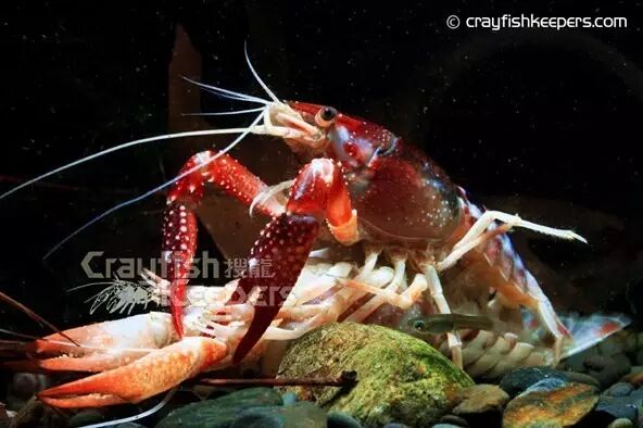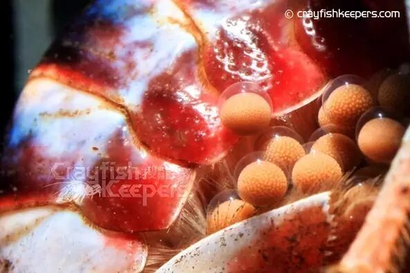 小龙虾几乎可以常年交配,尤其以每年的春季为高峰,交配一般在水中的开阔区域进行。雄虾通过交合刺将精子注入雌虾的纳精囊中,精子可在纳精囊中贮存超过半年。和我们之前介绍过的抱卵亚目物种一样,小龙虾的卵巢在交配后需2-5个月才能成熟,随后雌性进行排卵并完成受精,受精卵则粘附在雌性腹部下,也就是俗称的“抱卵”。