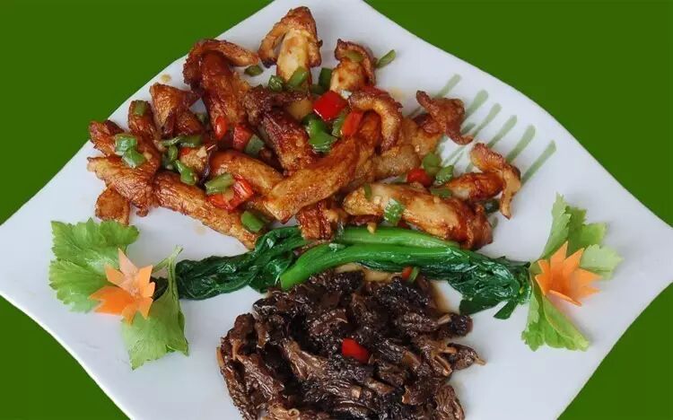 在主产地云南,鸡㙡菌最普遍的做法就是制成油鸡㙡保存和食用。把新鲜鸡㙡菌撕成小块放入油中炸,放入蒜、盐等佐料,炸至表面无水分为止,然后根据各家口味放入干辣椒、花椒等提味的配料,最后撒上芝麻出锅。油鸡㙡既可作一道小菜或零食,更可在面条、米线里作冒子锦上添花。