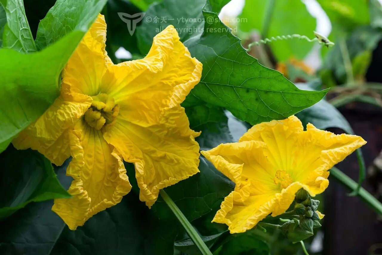 丝瓜的雄花比雌花略小,雌花的雄蕊退化,雄花的雌蕊亦退化。图片:余天一