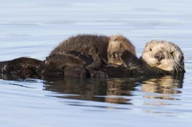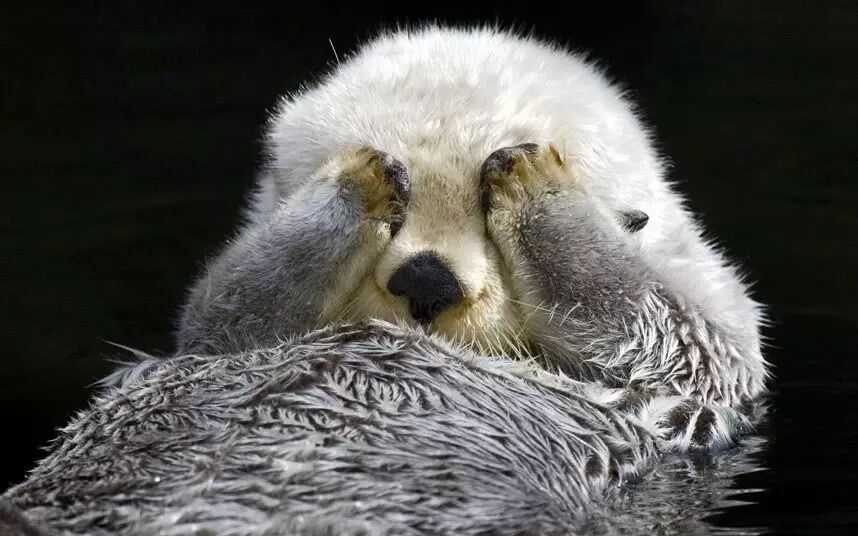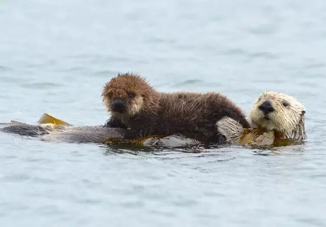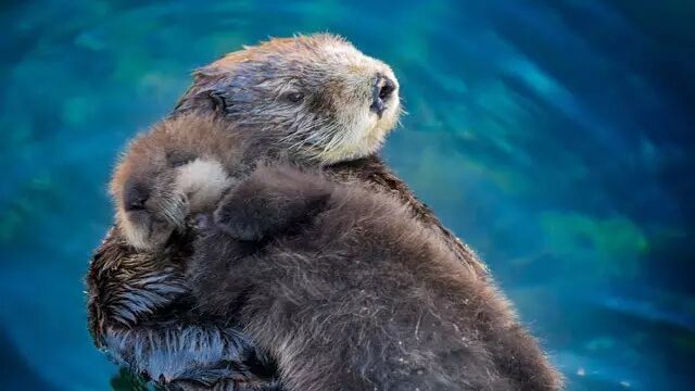 小海獭如果被妈妈遗弃,泡在寒冷的水中很容易失温。这也是为什么,海獭妈妈睡觉也要把小海獭抱在怀里。