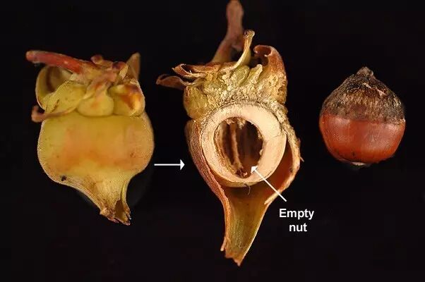 平榛果皮厚,而且时有空心。图片:landscapeplants.oregonstate.edu