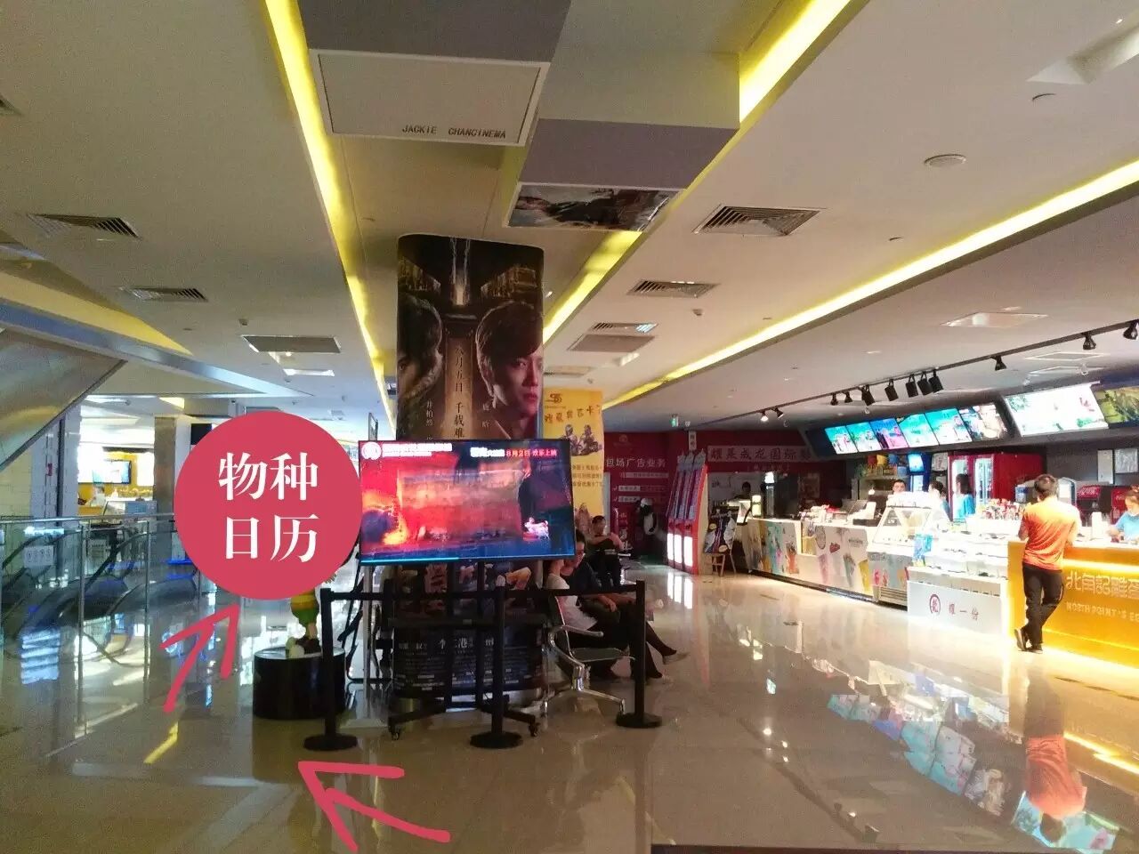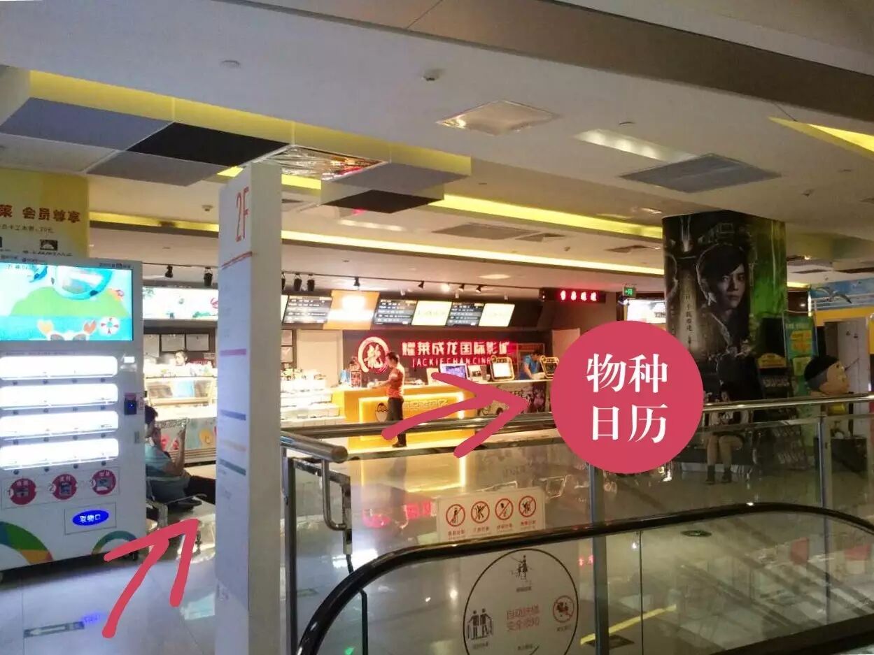如果你从购物中心的直梯上楼,物种日历的工作人员就在你的左前方: