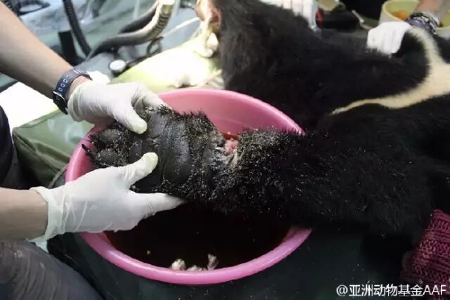 然而很不幸的是,经过仔细查看和各种方案的讨论,最终兽医还是无法保住她的手掌。她的伤口腐烂得太过严重,只能为她做截肢手术。漫长的手术经过了整整三个小时,终于在凌晨一点顺利结束。我们担心的败血症也没有发生,小熊虽然年幼、但生命力顽强,她挺了过来!