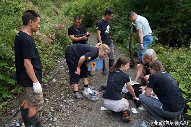 8月10日下午3点,亚洲动物基金位于四川龙桥的黑熊救护中心接到彭州市白水河自然保护区工作人员的紧急求助电话,告知我们一只小熊前足受伤、被困在彭州附近的山林间。四川省林业厅和彭州市林业局在第一时间予以我们支持和指导,于是下午4:30,我们以最快速度做好准备奔赴现场救援!