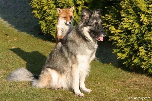 马克•贝科夫(Marc Bekoff)是科罗拉多大学的生态与进化生物学教授。在他还是个研究生的时候,曾在家里寄养过一只狐狸。这只新来的小动物和他的狗一拍即合:“它们成为了最好的朋友,”他说。它们一起玩耍;它们并排睡觉。贝科夫白天把狐狸关在笼子里,狗就“坐在笼子前面哀叫,为了见到它的狐狸朋友。”有一天晚上,他试图分开它们两个,狐狸为了靠近它的小伙伴,“基本把栏杆都咬烂了”。