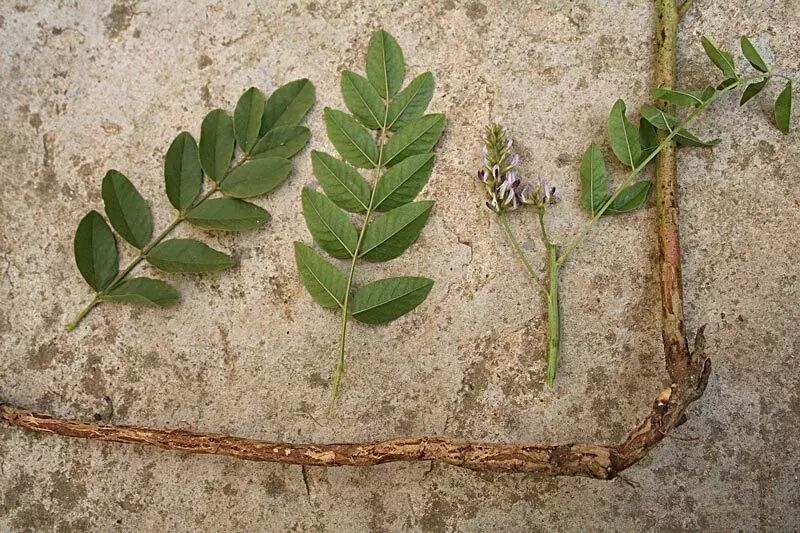 这些果实不像我们熟悉的四季豆那样甘美多汁,人们更关注它们埋在地下的根茎。采收甘草的时候,要把地面的茎叶割掉,从根茎两侧的土挖下去40厘米,然后像拔萝卜那样把甘草拔出来。之后再经过晾晒炮制,就是我们在药店里见到的甘草了。