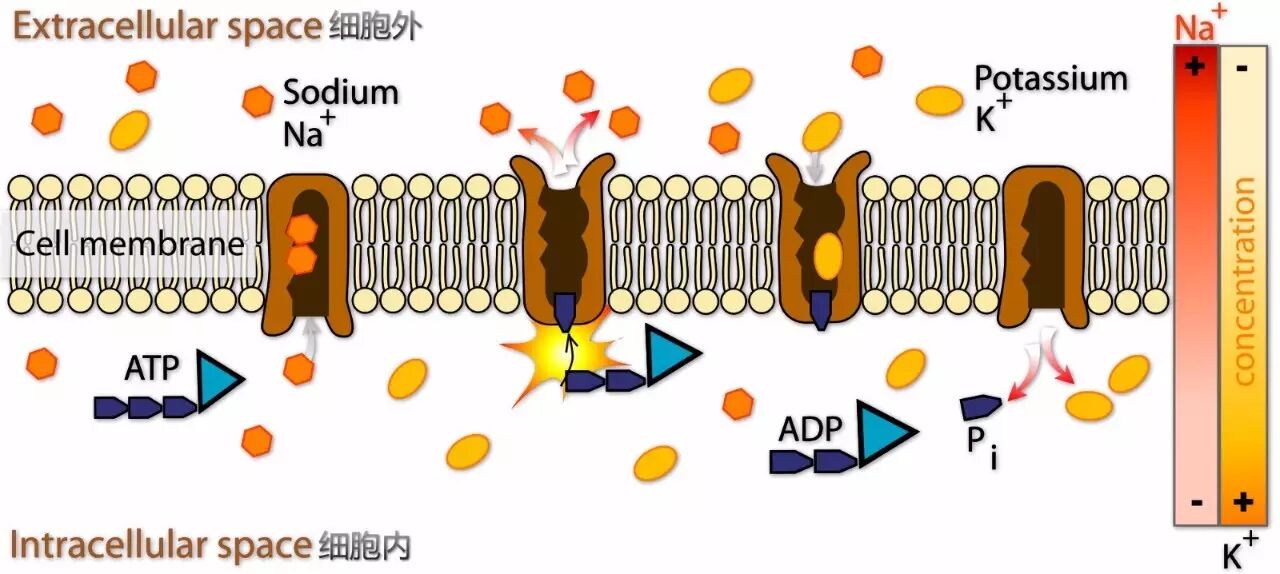 细胞膜上的钠钾泵,肾上腺皮质产生的醛固酮会改变其活性,使肾脏保留更多的水和钠而排出更多的钾。甘草甜素对人体的作用也与之类似。图片:wikipedia