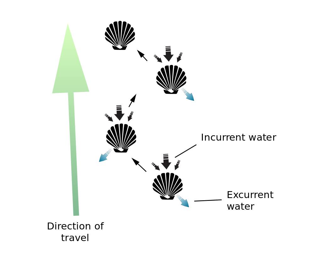 当需要运动时后闭壳肌可以迅速反复收缩舒张往贝壳内吸水,同时贝壳边缘的外套膜闭合,让水流只能从两片贝壳的铰链处喷出,这样就可以让扇贝像吃豆人(Pac-Man)一样一张一合地游泳了,速度大概是每秒钟50厘米左右。也因为这样的结构,使扇贝成为贝类中唯一一个有迁徙行为的类群。