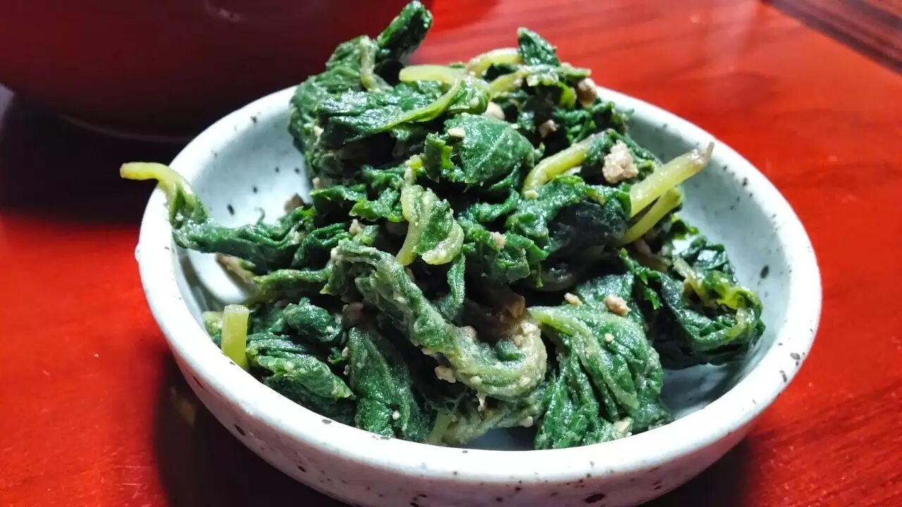 蜂斗菜能好怎?除了根茎外,全身上下都能吃。其中叶片食法较为单一,一般要选择嫩叶,大抵就是切细了熬粥,或夹到饭团里去。韩国人的吃法比较粗犷,直接把叶片加盐揉搓到脱水,再调入麻油和大酱,撒上芝麻即可,由于味道偏咸,所以搭配白粥会比较适口。
