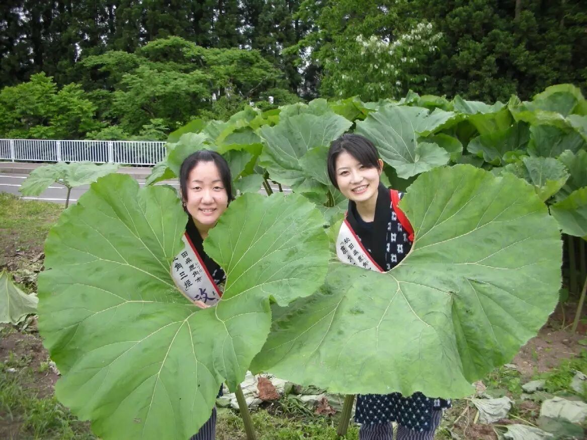 春夏之交的秋田蕗已经能长到一人多高,这时在它们的大本营——秋田县(全日本秋田蕗产量最高的地方),会举办热热闹闹的“秋田蕗收割祭”,除了开展一系列庆祝活动外,当地观光局挑选一些面容姣好的女子,穿上独特的民俗服装,下地收割秋田蕗,同时邀请一些媒体记者现场拍写真,制作成宣传片,借此吸引更多的游客来旅游观光。