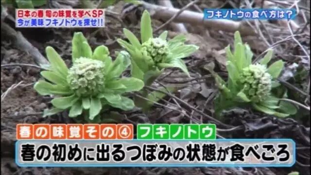 蜂斗菜的花苞又叫蕗薹,是味道绝妙的野菜。日本人尤其追捧蜂斗菜花,它们凌寒开放的精神,传递着一种坚韧不拔的气节,乃食春之奥义所在。至于味道嘛,你们的“虾饺”大野智曾经录制过一期竞赛类节目,在深山里找寻蜂斗菜花苞,直接生吃,据称口感清爽,余味微苦。