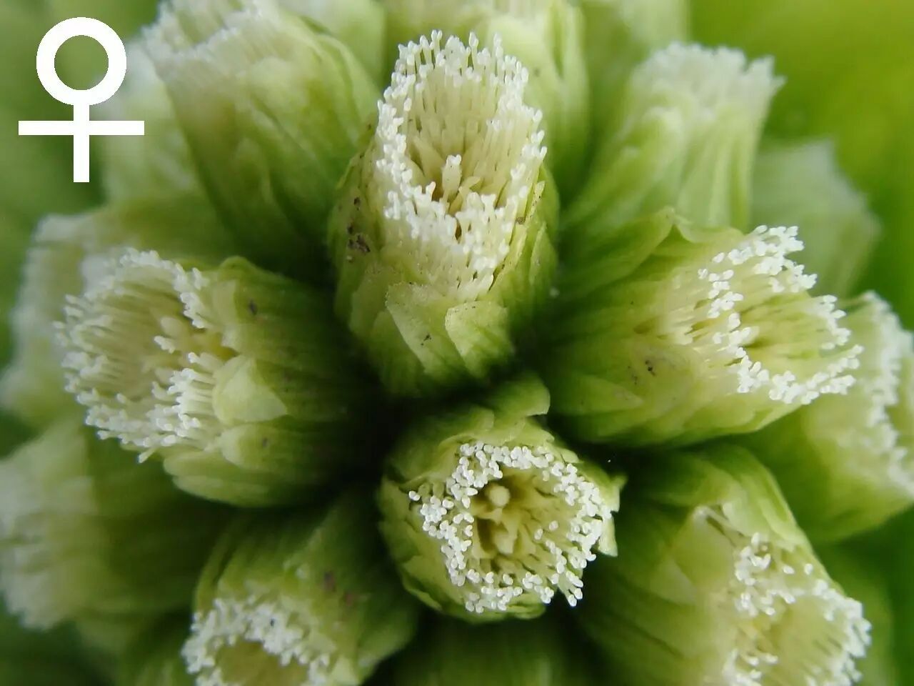 蜂斗菜雌雄异株,雄花黄色,雌花白色。图片:wiki