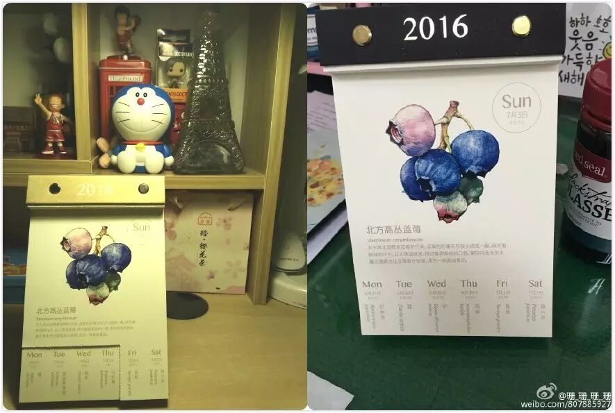 像微博上的两位小伙伴这样,拍下你的《2016餐桌物种日历》现在的样子,直接发送给微信公众号“物种日历”(就是我啦),我会选出最有心/最美貌的十张照片,给每位小伙伴送上一套物种日历动物/植物主题明信片。
