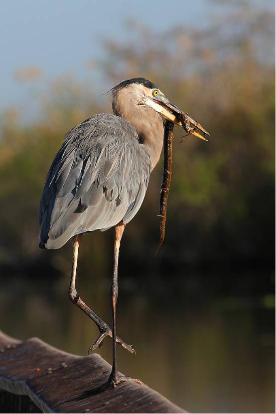 大沼泽地国家公园,大蓝鹭Ardea herodias捕食黄鳝,说明黄鳝在美国也是有天敌的。图片:flickr.com