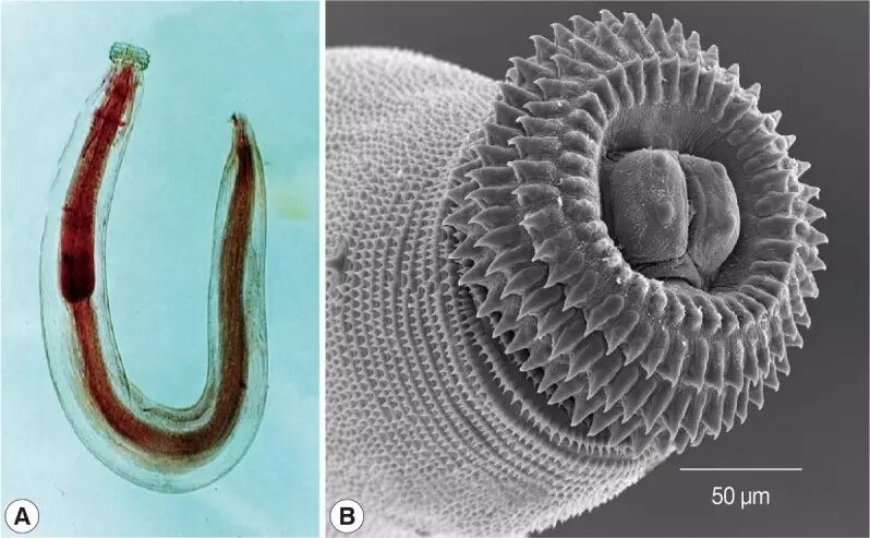 人并非颚口线虫的合适宿主,但它仍然可以在人体内存活相当长久,会移动的皮肤肿块是颚口线虫病的一个主要症状。图片:parasitol.kr