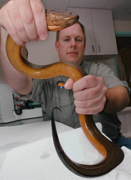 佛州的黄鳝样本,你这样抓是不行的我跟你说。图片:news.ifas.ufl.edu