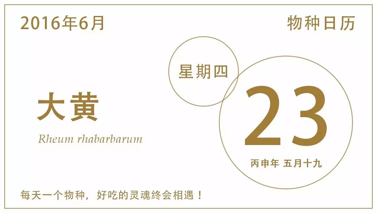 以上几种大黄都是蓼科,大黄属的植物。今天日历上的物种拉丁名称是R.rhabarbarum,这是波叶大黄R.undulatum的异名。波叶大黄也称garden rhubarb,原产中国东北和内蒙古地区,俄罗斯西南部、西伯利亚地区和蒙古也有,rhubarb这个名称就来自古希腊语“Rhā”,这个词在古代既指大黄这种植物,也指其生长的伏尔加河地区。据记载,波叶大黄最早可能在公元1世纪就被带到希腊。到了蒙元时期,丝路贸易发达兴旺,香料、药物等商品沿着贸易通路,从阿勒颇和士麦那的港口源源不断地到达欧洲,“Turkish rhubarb”这个名称就是那时候出现的。不过那时候商品贸易包含的应该不止波叶大黄,据《马可波罗行纪》记载,当时比较贵重的是原产西夏省的大黄,可能就是甘肃与青海一带的掌叶大黄与鸡爪大黄,而且品质比波叶大黄更好。