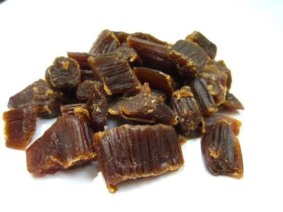 大黄可以脱水然后注入果汁制成糖果,上图是草莓味大黄糖。图片:wikipedia.org