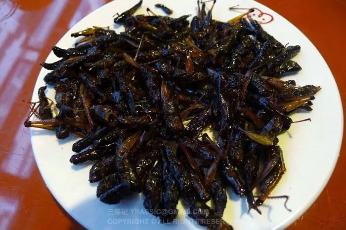 中国人和蝗虫的战斗迄今也没有停止,我们在这里就不啰嗦怎么防治了,再这么写下去几乎都要忘记这是餐桌物种日历。既然蝗虫这么多危害这么大,那就把它变为人类的食物吧,如古人所说:“既除害,又佐食,何惮不为?”。在徐光启的《农政全书》里记述:“唐贞观元年,民蒸蝗,曝,飏去翅而食之。“看这吃法应该是蒸了之后爆炒,去了翅膀再吃?