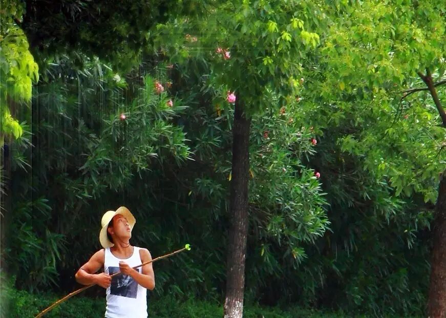 抓蝉猴的人一般都在晚上出动,竹竿一头裹上面筋就可以粘知了猴。这个方法也不稀奇。