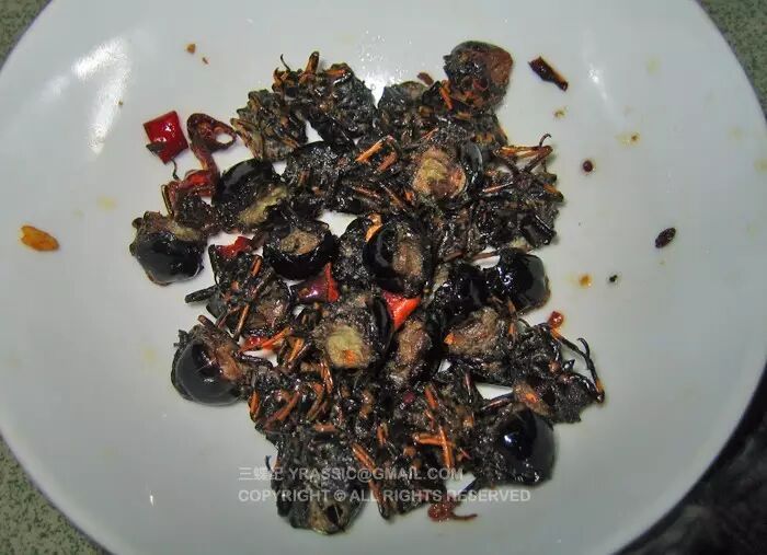 所以对于蝉猴来说,应当还是油炸、椒盐、干煸这类吃法更适合,没有听到有诸如水煮、白灼、清炖的。法布尔的做法是:几滴油,一小撮盐,一点洋葱炒蝉猴,想来也不会很好吃。