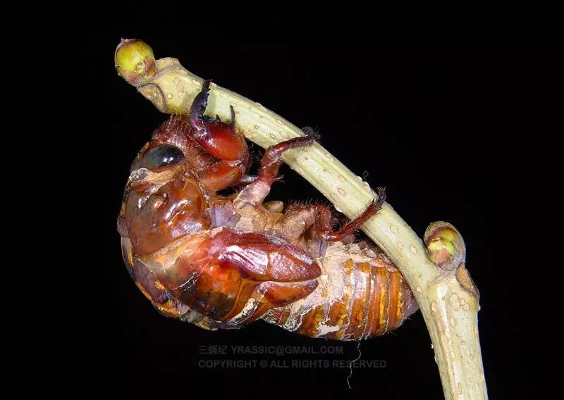 羽化中的黑蚱蝉。图片:三蝶纪