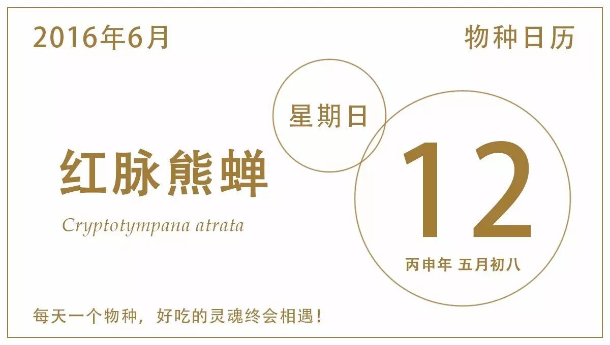 今天的主角是红脉熊蝉(Cryptotympana atrata),如果大家有印象的话,去年物种日历里的黑蚱蝉就是它。