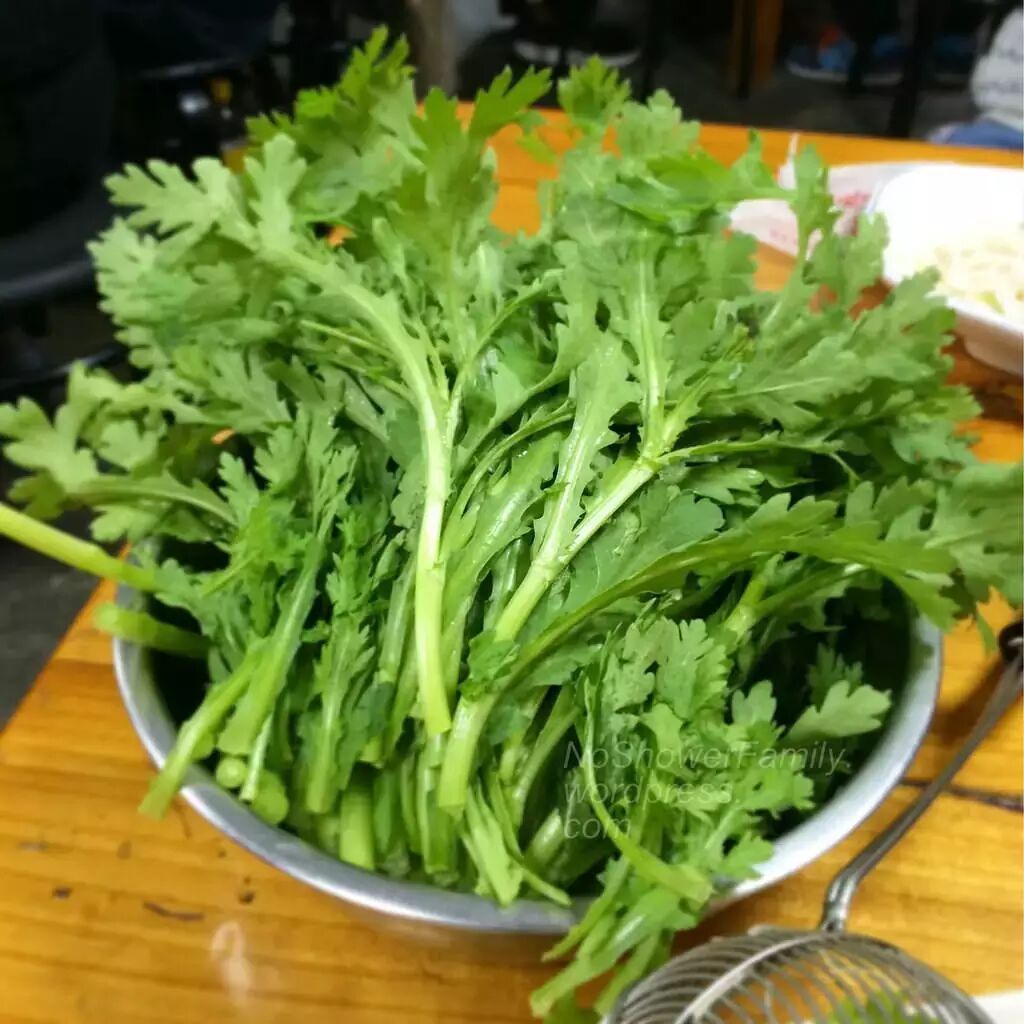 涮羊肉的时候怎么能少了一盘蒿子杆或者茼蒿?图片:noshowerfamily.wordpress.com