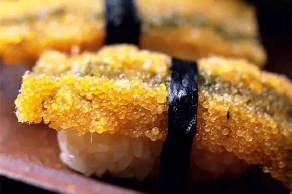 腌渍后的鲱鱼肉口感酸甜,和金黄脆爽的多春鱼卵紧紧压制在一起就是常见的“希鳞鱼”。所以希鳞鱼并不是一种鱼而是一种加工食品,名称大概来自于鲱鱼(Herring)的英文发音吧。有时鲱鱼也会用鲭鱼代替,鲱鱼籽也常常被染成不同颜色。